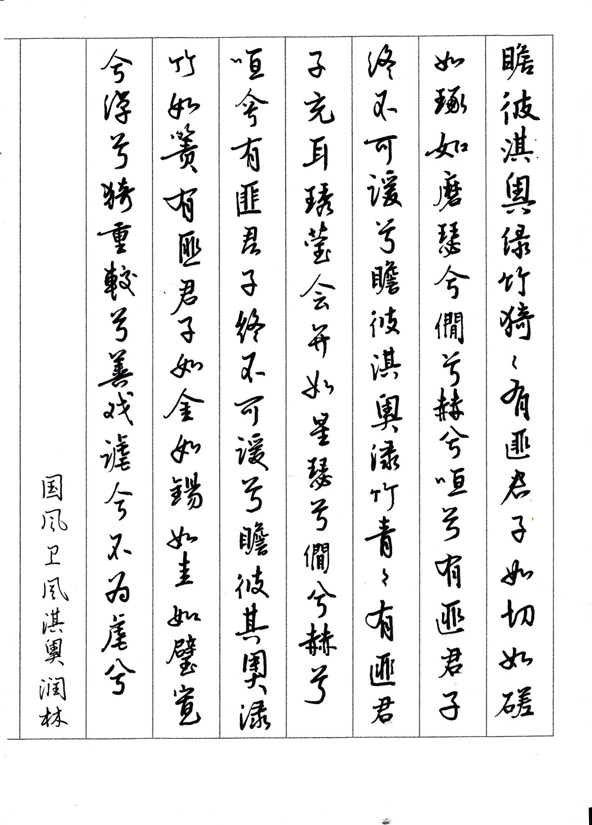 瞻彼淇奥,绿竹猗猗。有匪君子,如切如磋,如琢如磨。瑟兮僩兮,赫兮咺兮,有匪君子,终不可谖兮!