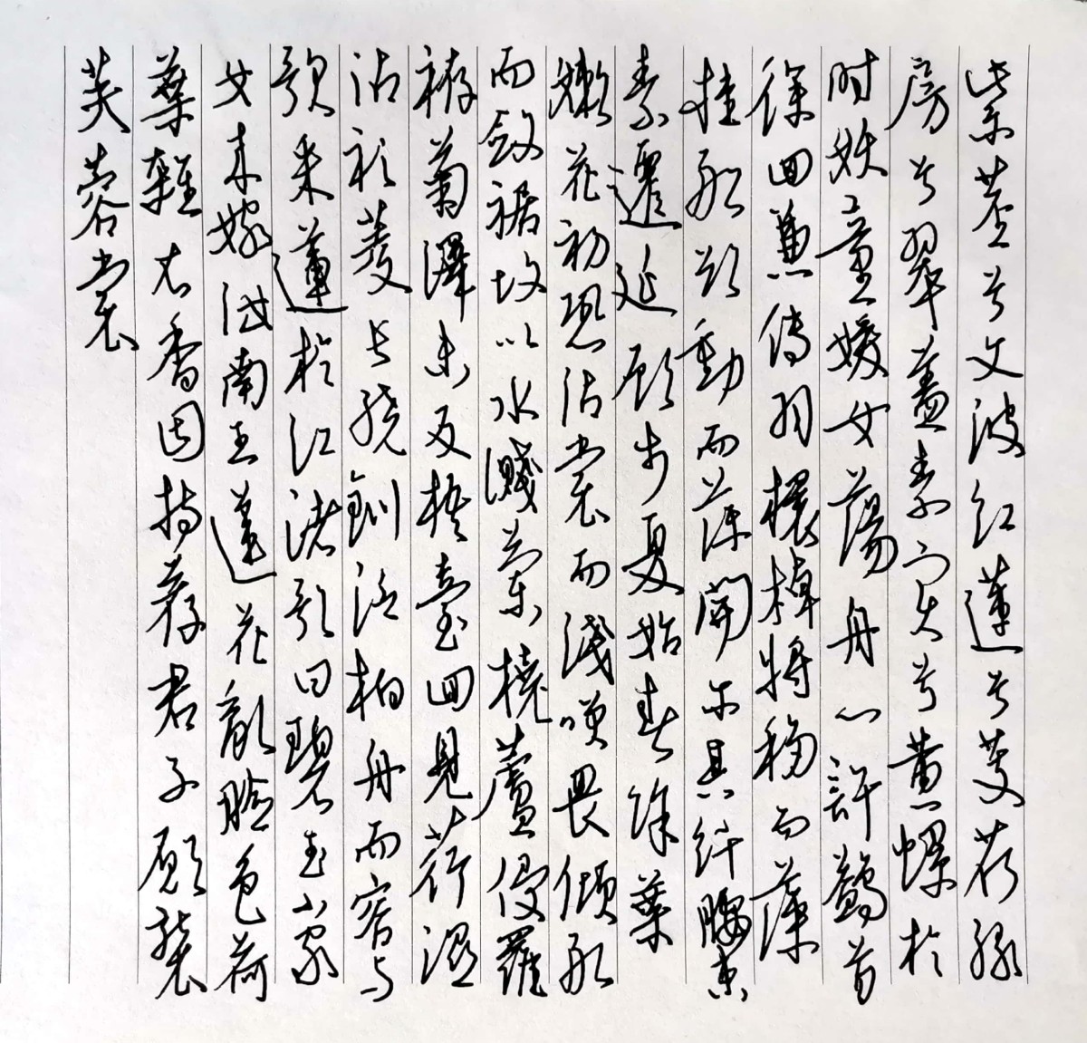 上一期钢笔字练字的题目是南梁朝代的萧绎的一首《采莲赋》