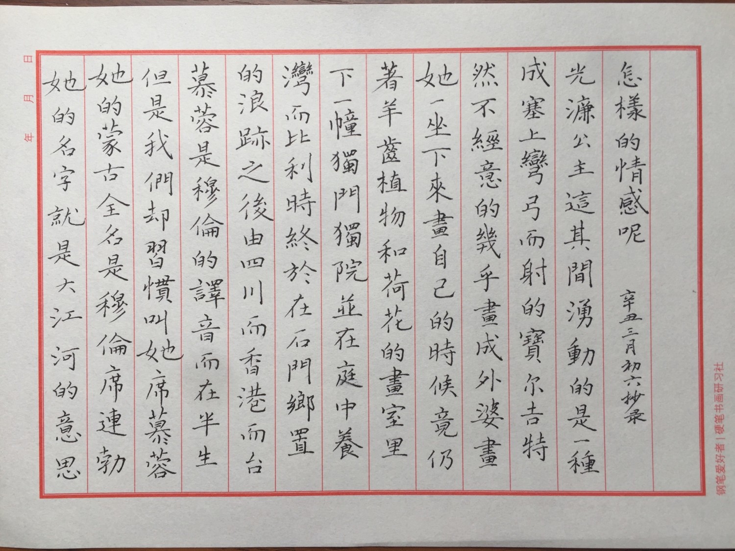 上一期练字打卡的题目,选自席慕容的散文节选,并且要求是横写