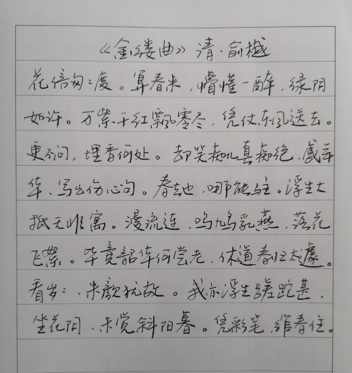 上期题目是一首清代诗人俞樾的《金缕曲》