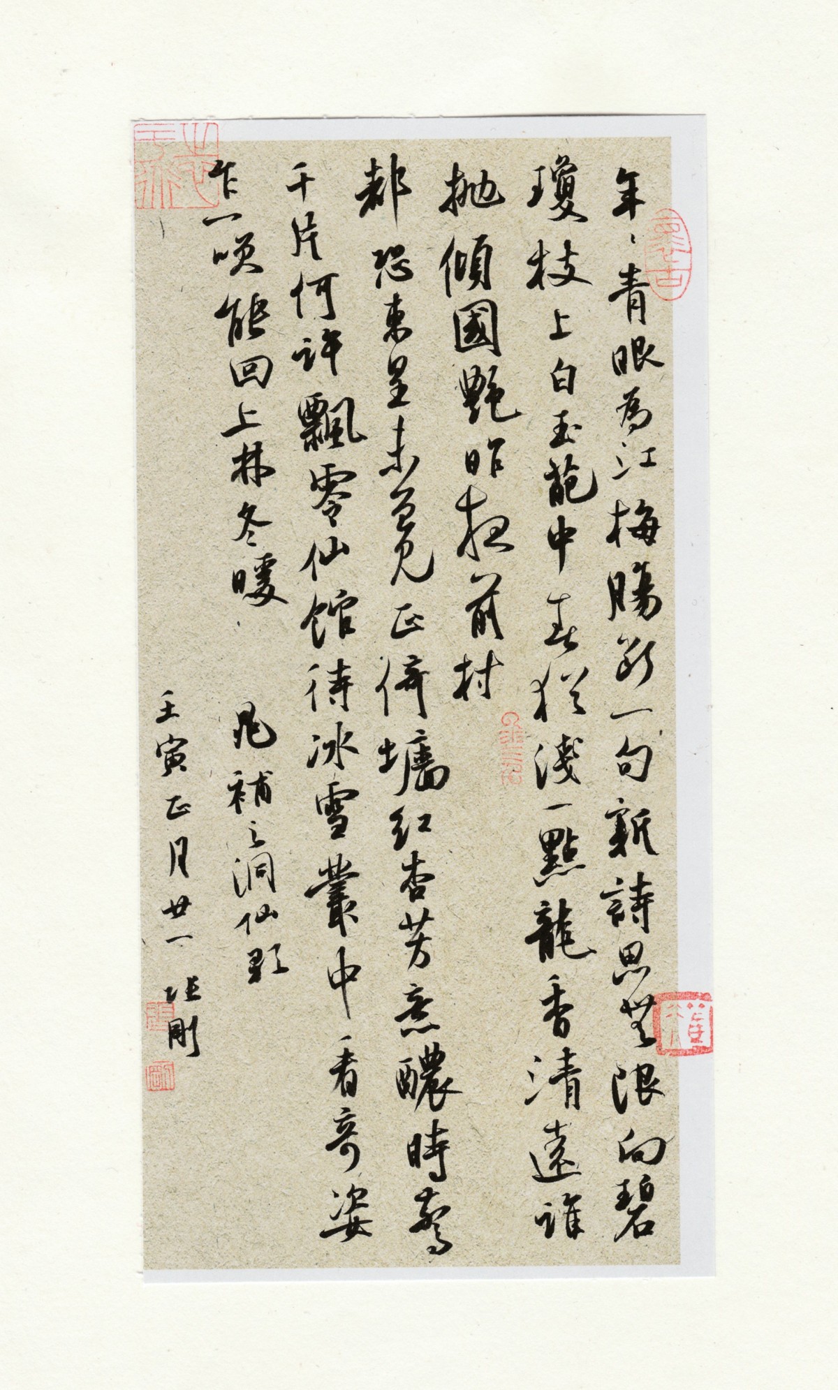 年年青眼。 为江梅肠断。 一句新诗思无限。 向碧琼枝上,白玉葩中、春犹浅。 一点龙香清远。 谁抛倾国艳。 昨夜前村,都恐东皇未曾见。 正倚墙红杏,芳意浓时,惊千片。 何许飘零仙馆。 待冰雪丛中看奇姿,乍一笑能回,上林冬暖。