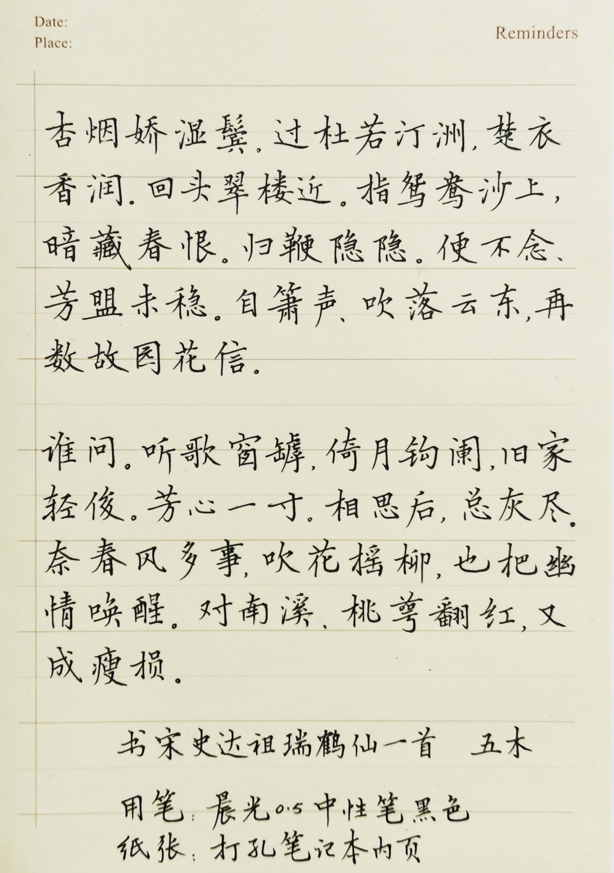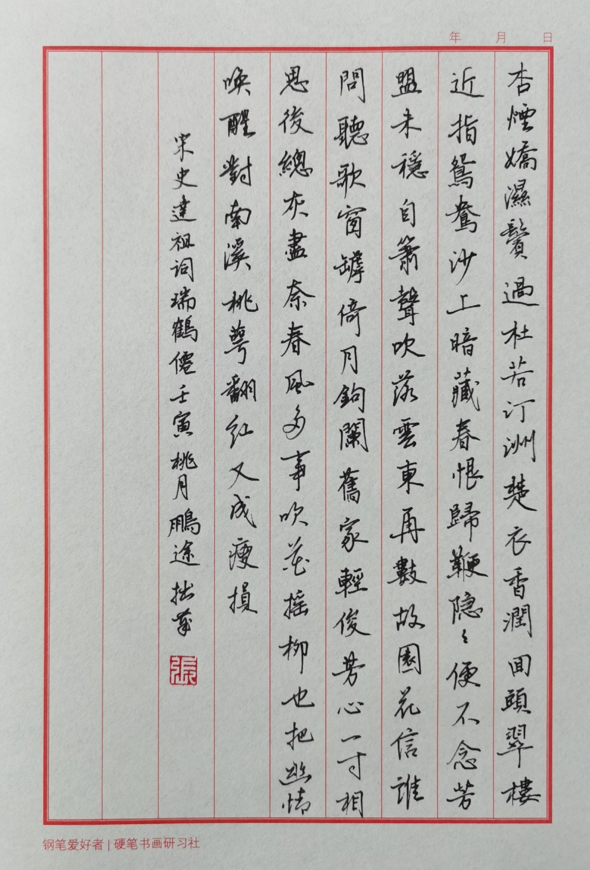 上一期练字打卡的题目是史达祖的《瑞鹤仙》