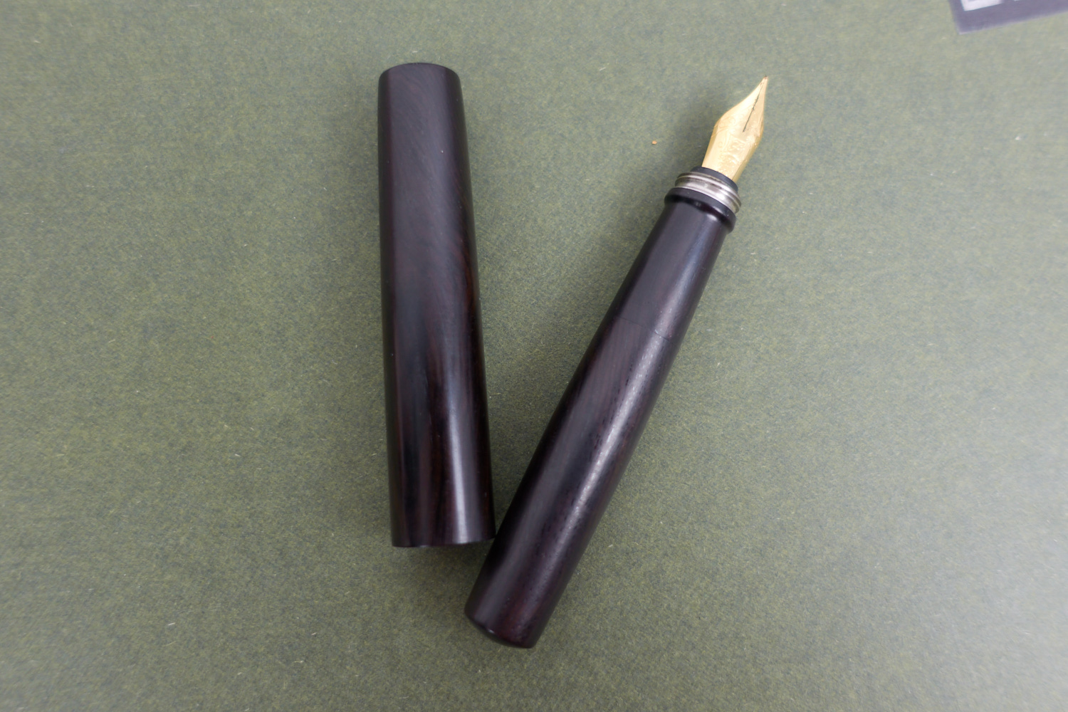 在这么小的短钢天冠上,我们使用了手工嵌银的工艺做了一个LOGO出来,高级感是不是出来了?纯手工用银丝镶嵌,不使用任何胶水。为了做出这么一个logo,差不多做废了20个笔帽才成功做出来这一个,总算把基本工艺问题解决了,毕竟尺寸太小,又要考虑木料本身的强度问题,可以说是螺丝壳里做道场。限于目前的工艺稳定性以及成本问题,暂时无法提供带嵌银LOGO的版本,一是我们需要继续测试做一批,优化制作工艺和细节,另外也是成本考量,再给我们一些时间。