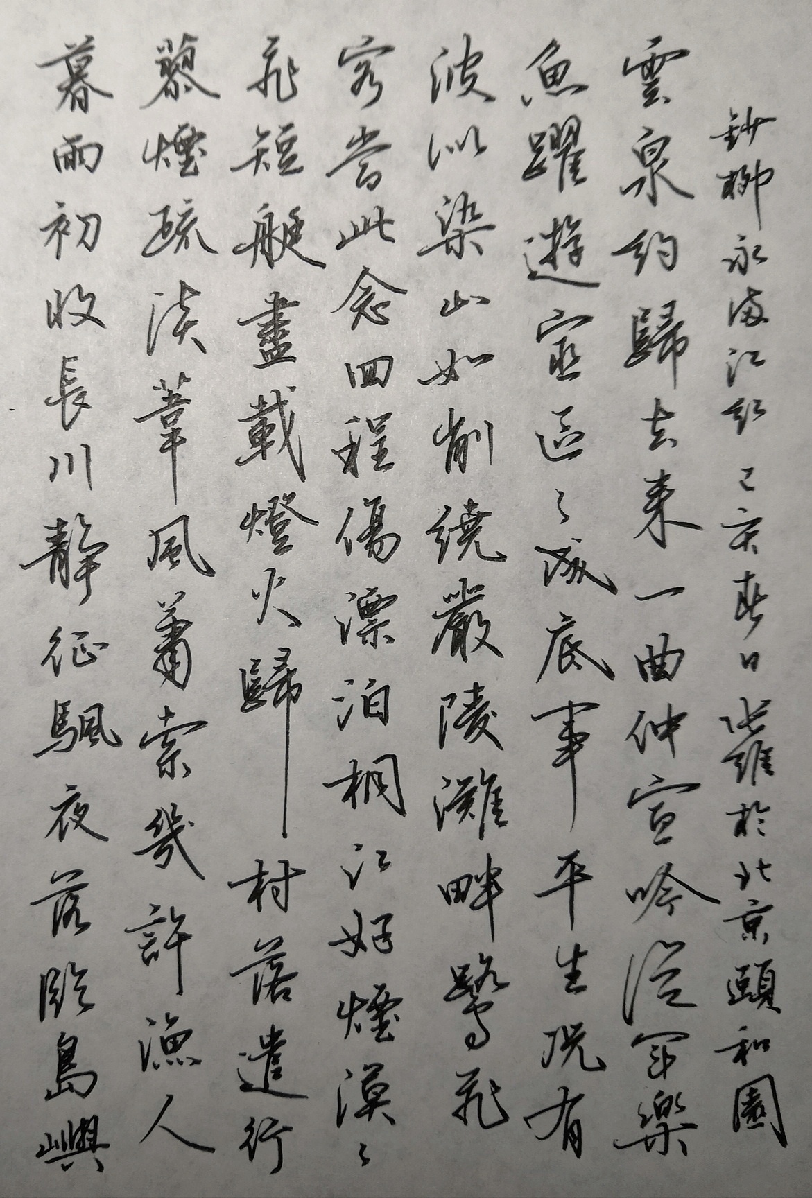 上周我们布置了今年的第一篇钢笔字练习的题目,是柳永的一首《满江红》