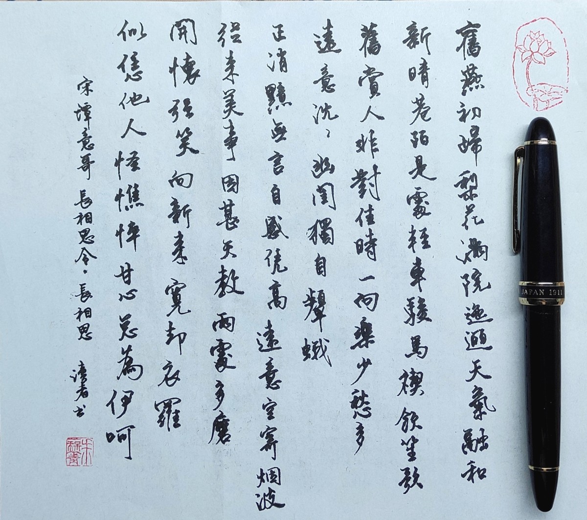 每期作业的提交方式:大家关注公众号【钢笔爱好者】然后点击下方菜单【钢笔书法】>>【每周一篇练字打卡】提交即可。注意,每期的作业截至下周一下午6点,再次提醒,务必要白纸黑字,尽量不用彩墨,且不要添加滤镜等美化效果。并且建议各位 直接在作品上注明自己所使用的钢笔/笔尖/墨水等相关信息以供他人参考。