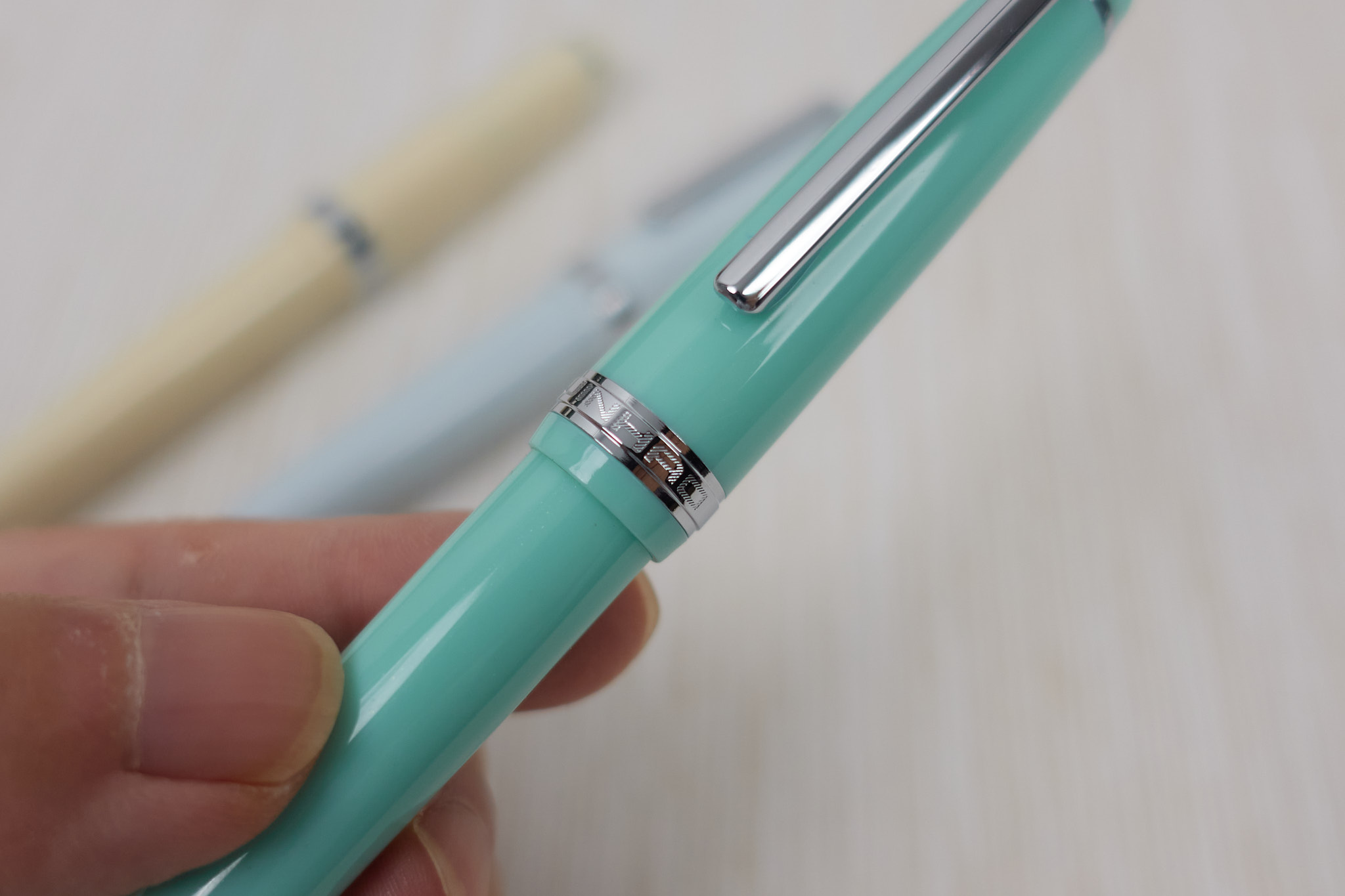第一次拿到这三支笔的时候,排除品牌极其衍生的一些问题,不得不说,做的真的挺好看。感觉金豪第一次开始有了青春的审美,不再是那种厚重的古铜色古银色的铜马车之类的了。