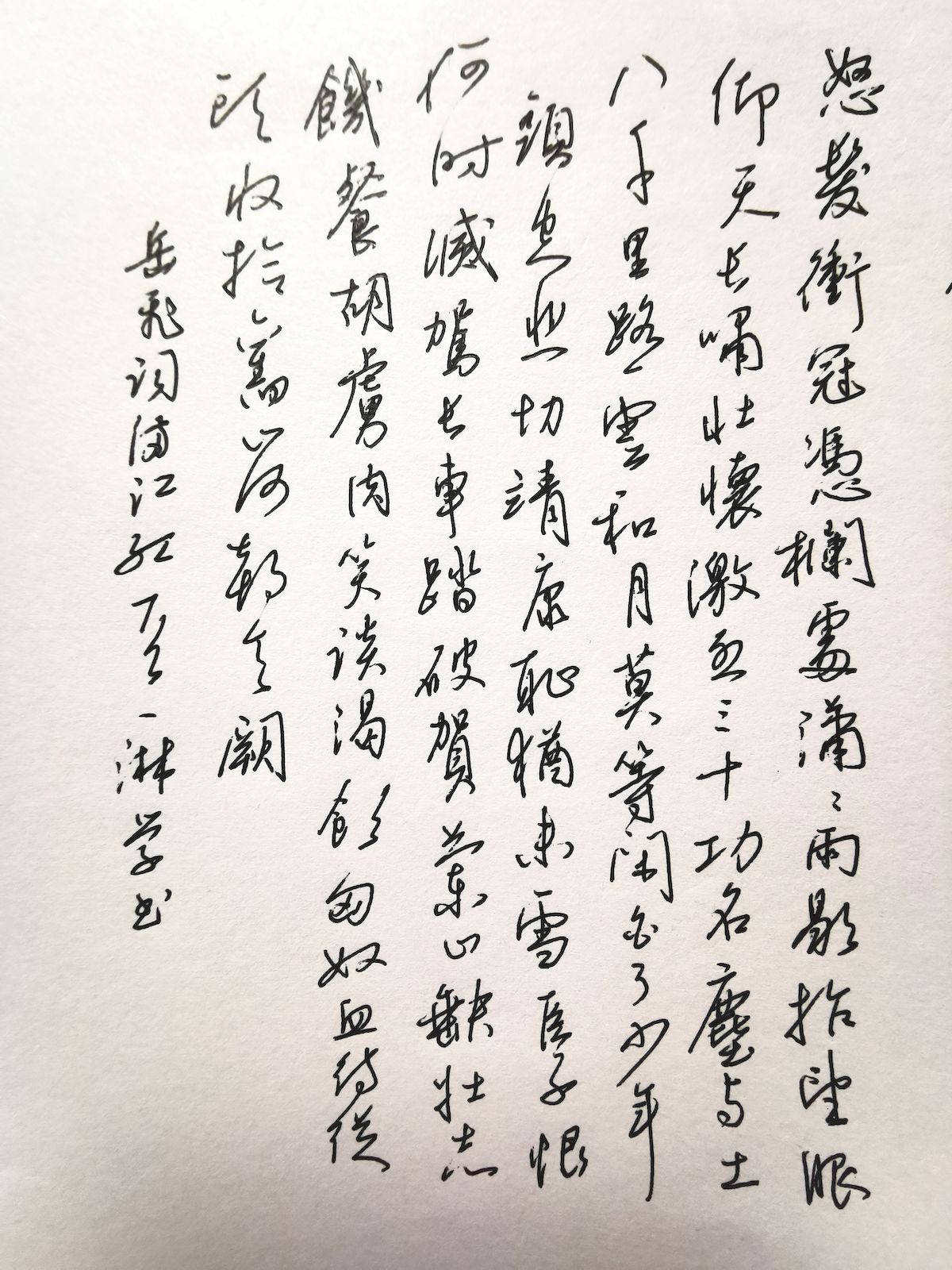 上一期练字打卡的作业算是追了一个热点,岳飞的《满江红》。其实这个题目,在2017年就写过,链接如下: