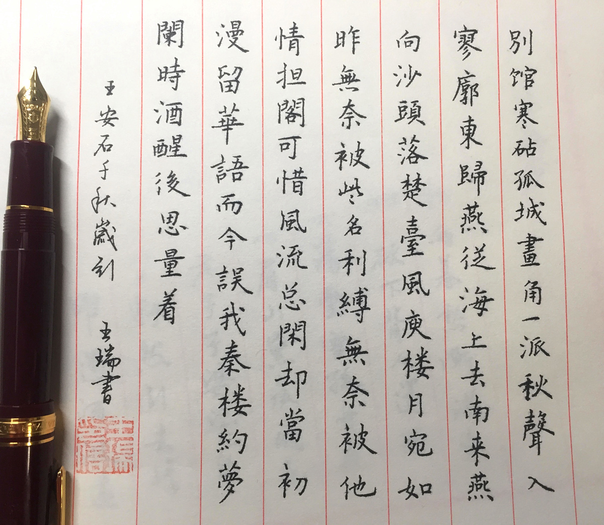 上一期的钢笔字练习的题目,王安石的《千秋岁引》