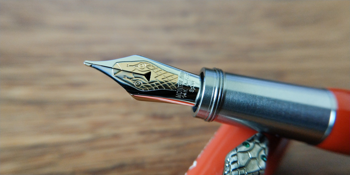 来一张万宝龙红蛇笔尖的特写,这个笔尖确实毒哈。