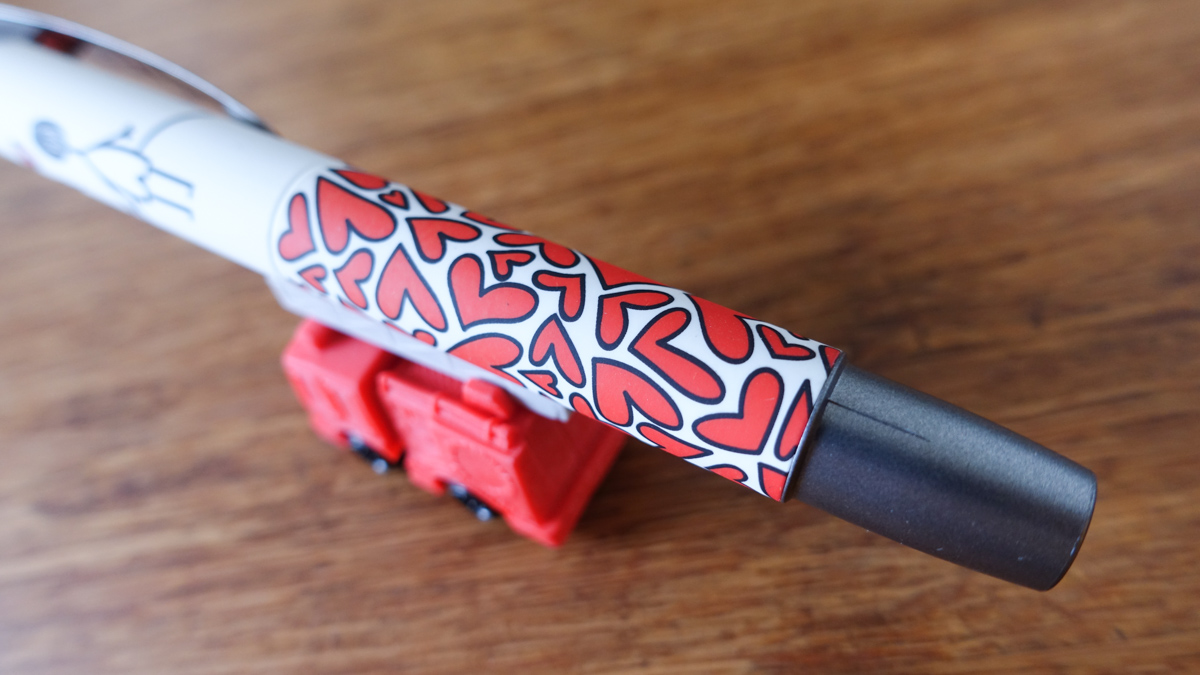 打开笔帽,笔握有正姿设计,一样是亲肤材质,不过就是工艺上不是很完美,有一点模具注口的小毛刺,自己可以简单处理下。