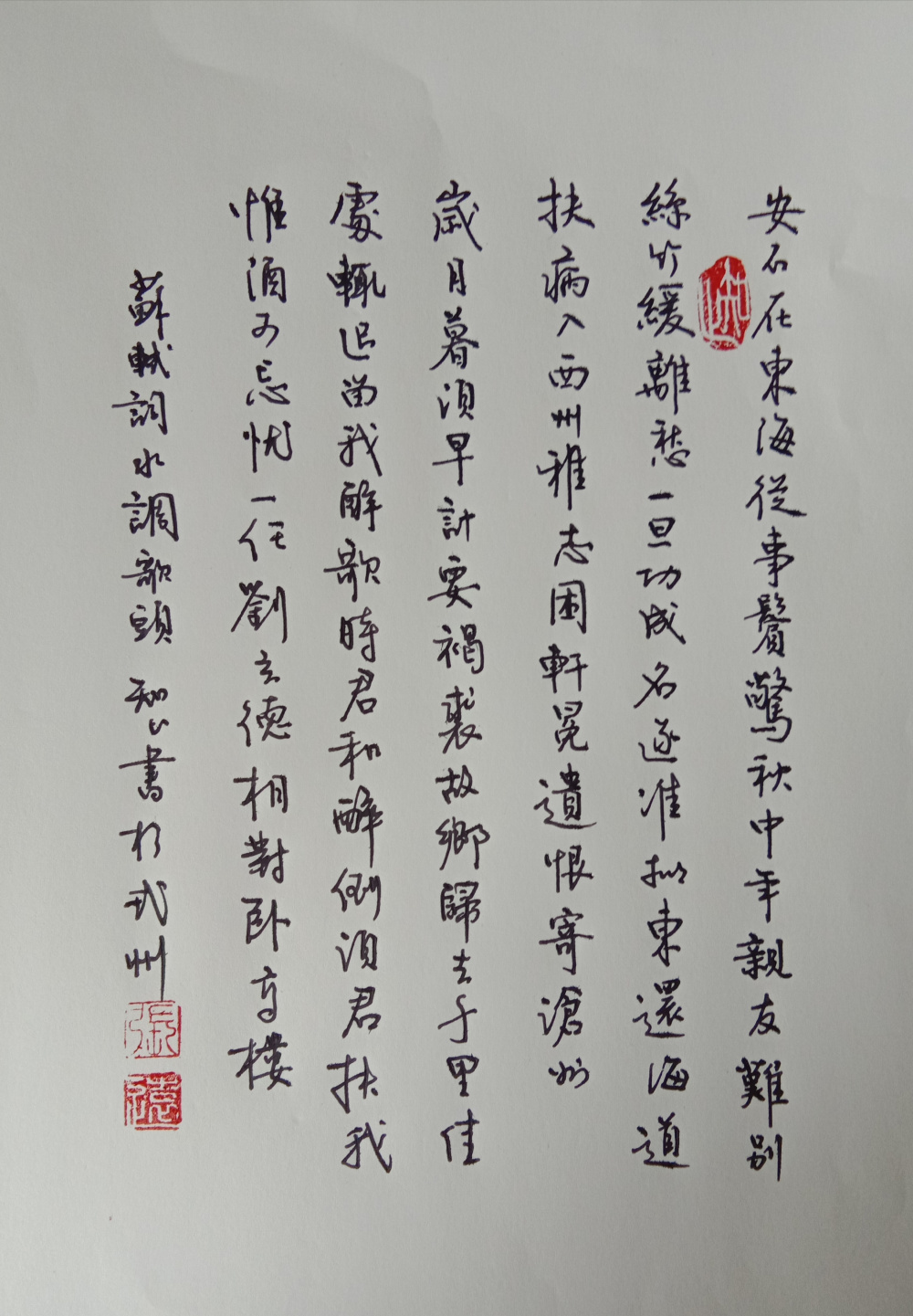 然后是本期的钢笔字练习的题目。一首王沂孙的《眉妩·新月》。