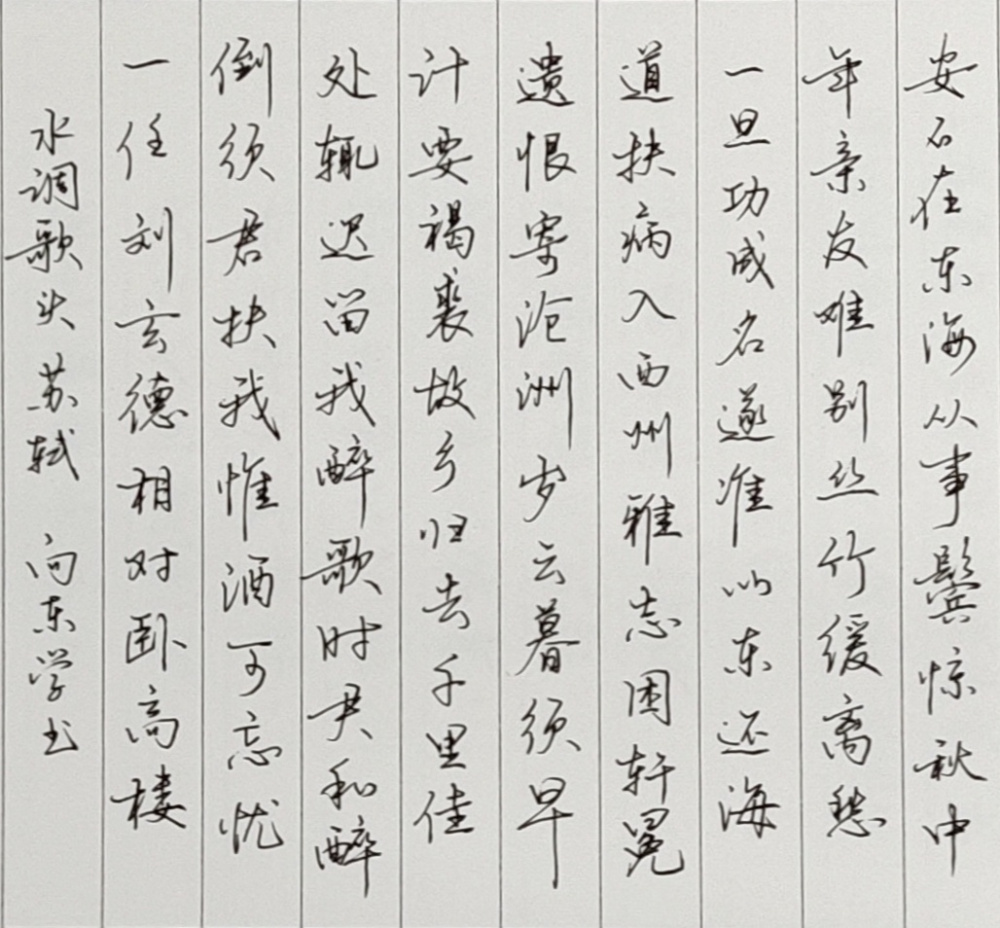 上期钢笔字练习题目苏轼的一首《水调歌头》