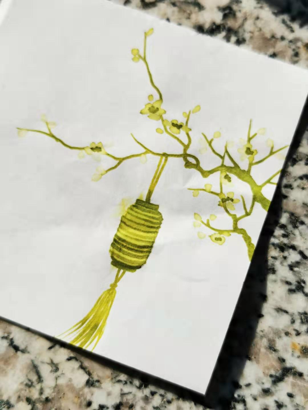 橘色,厚涂颜色偏艳,兑水后和写字的时候感觉都没那么深,饱和度也不高,比较温柔的一个颜色。