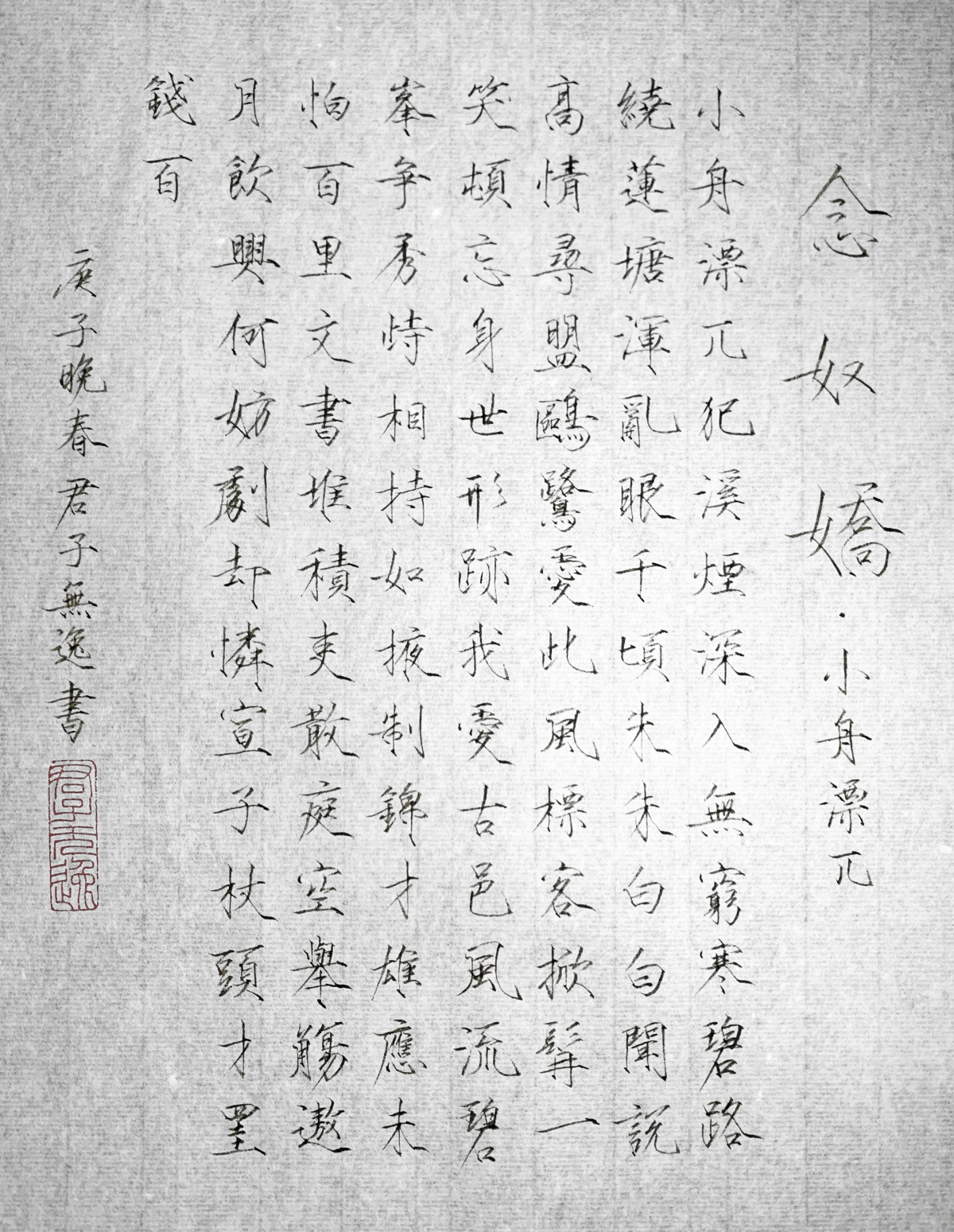 上一期钢笔字练习的题目是刘一止的《念奴娇》