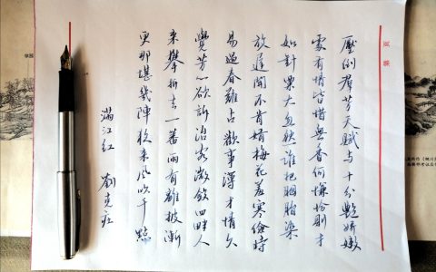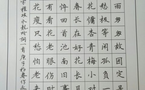 上周的钢笔字题目是刘克庄的《满江红》,没想到,在这跨年的夜里,我还要整理作业- – 《满江红》刘克庄压倒群芳,天赋与、十分艳。娇嫩处、有情皆惜,无香何慊。恰则才如针粟大,忽然谁把胭脂染。放迟开、不…